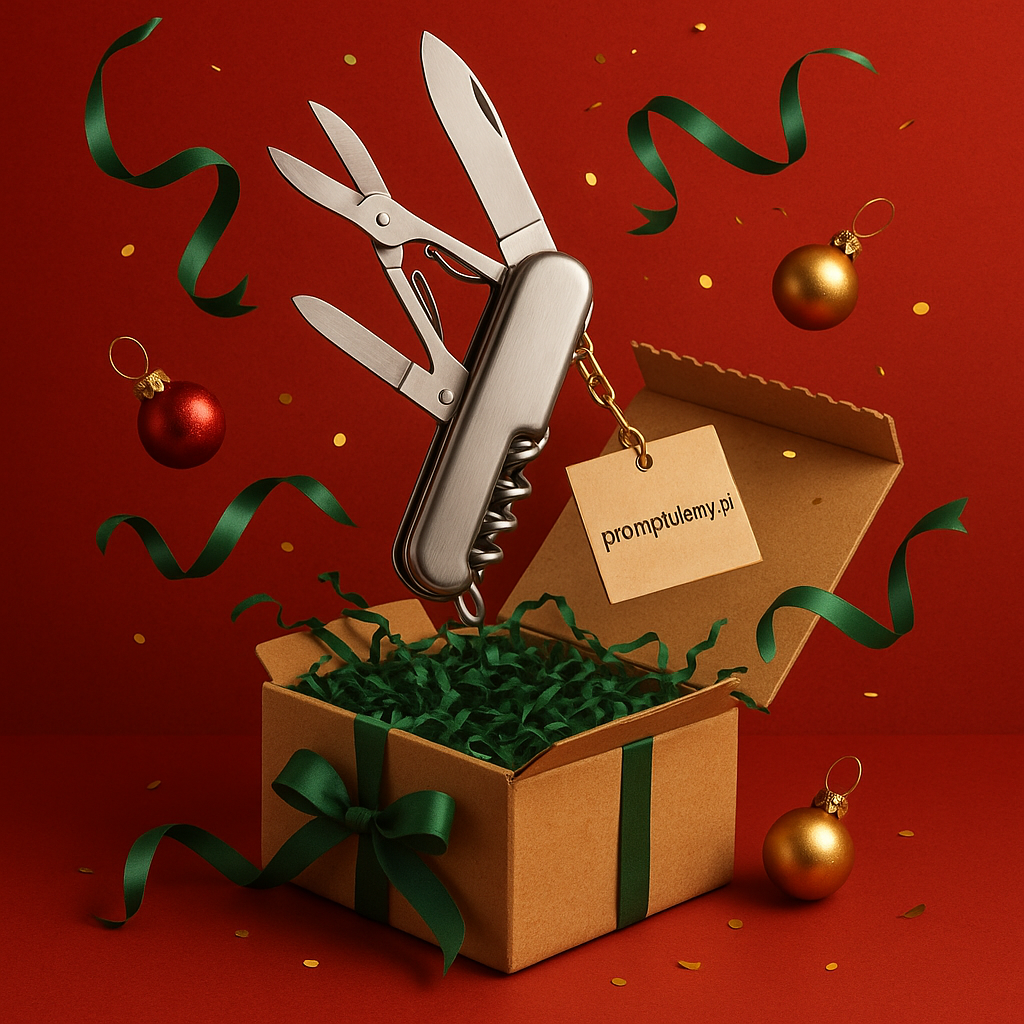 Ten prompt pozwala stworzyć dynamiczne, świąteczne wizualizacje produktów — takie, które wyglądają jakby z energią „wyskakiwały” z kartonowego pudełka otoczonego dekoracjami. Efekt przyciąga uwagę, buduje klimat premium i świetnie nadaje się do sezonowych kampanii świątecznych, banerów, postów i reklam.